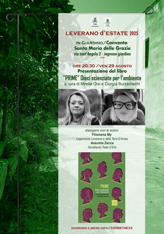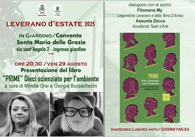LEVERANO – Legambiente Leverano e della Terra d’Arneo in collaborazione con il Comune di Leverano organizza la presentazione del libro “Prime. 10 scienziate per l’ambiente”, a cura di Mirella Orsi e Giorgia Burzachechi, edito da Codice.