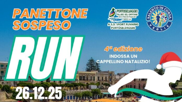 SANTA MARIA AL BAGNO – Le associazioni ASD Sport Running Porto Selvaggio e Salento in Corsa Veglie organizzano la 4ª edizione della “Panettone Sospeso Run”, con la collaborazione del Presidente del Consiglio Comunale di Nardò, Antonio Tondo, e del Presidente della Consulta Comunale dello Sport, Tony De Paola.