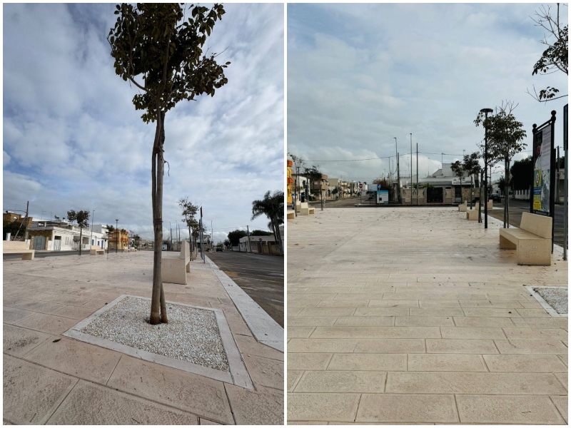 Piazza Mameli torna così a essere un punto di aggregazione vivo, capace di valorizzare Torre Lapillo e di migliorare la qualità degli spazi pubblici, rendendoli più belli, funzionali e sostenibili.