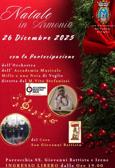 VENERDÌ 26 DICEMBRE 2025 ORE 19.00 – CHIESA SS. IRENE E GIOVANNI BATTISTA