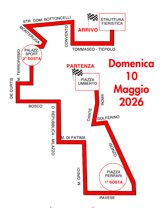 La partenza sarà da Piazza Umberto I e l’arrivo sarà presso la Struttura Fieristica in via Salice.