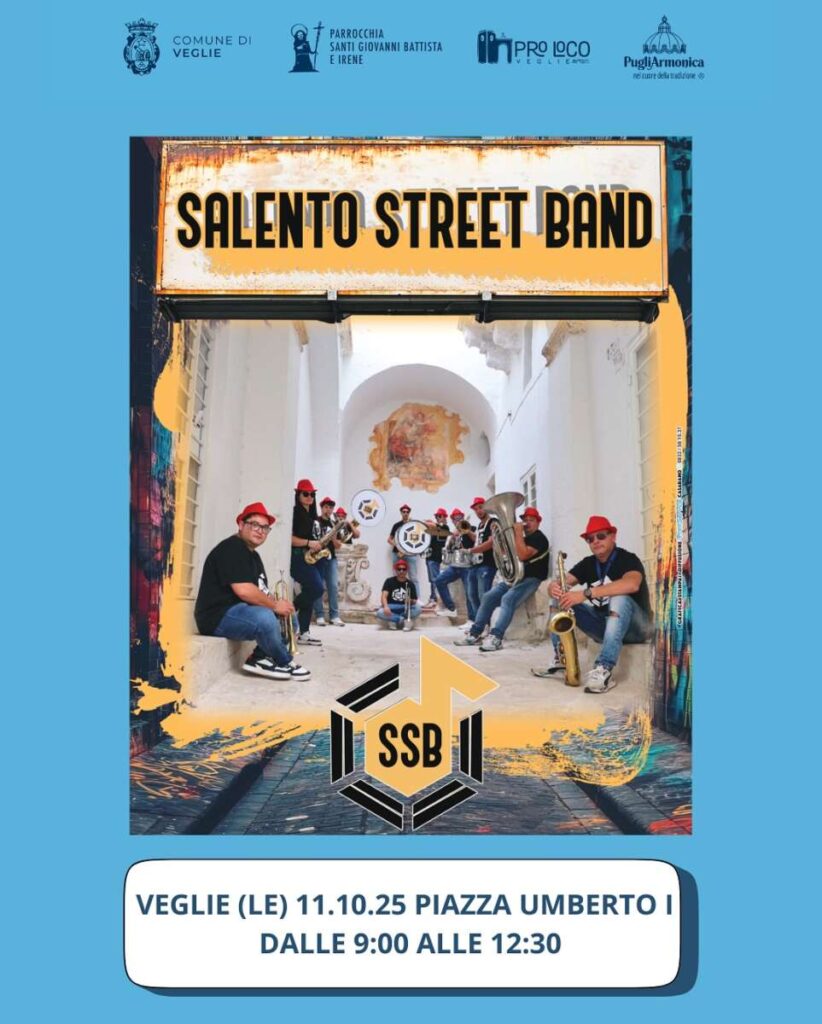 La giornata inizierà con la Santa Messa alle ore 8:00 e proseguirà con l’inaugurazione della fiera alle ore 9:00, accompagnata dal Gran Concerto Bandistico A. Reino di Veglie, diretto dal Maestro Cosimo Costa, e dalla Salento Street Band, che farà ballare i presenti in piazza e per le vie del paese.