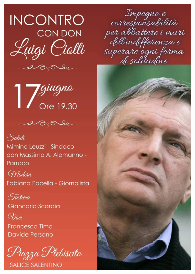 DON LUIGI CIOTTI INCONTRA LA COMUNITA’ DI SALICE MARTEDÌ 17 GIUGNO