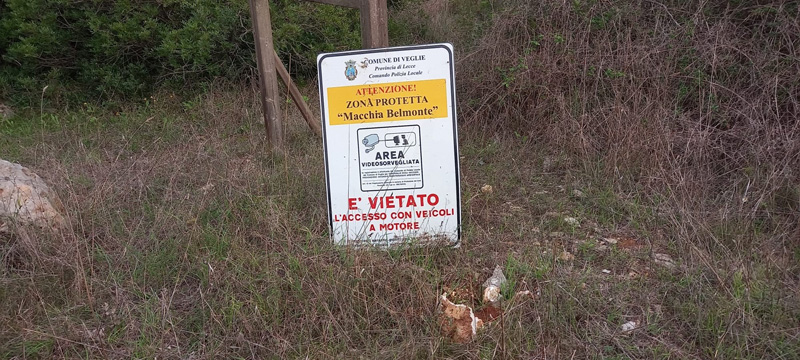 VEGLIE – Già nel mese di giugno all’ingresso nord del parco “Lupomonaco” la segnaletica metallica appariva divelta e adagiata sul terreno. Abbandono di rifiuti di varia tipologia, anche pericolosi, e cestini portarifiuti colmi lungo i sentieri. Tutto regolarmente segnalato con documentazione fotografica al Comune di Veglie e al Gruppo Carabinieri Forestale.