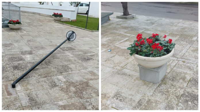 La mattina del 20 dicembre è stato trovato divelto uno dei pali delle lampade che illuminano lo spiazzo antistante il Frantoio.