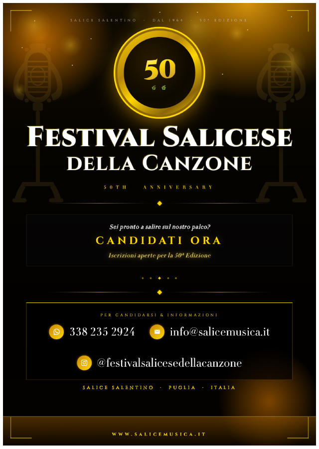 SALICE SALENTINO – Il Festival Salicese della Canzone arriva alla 50ª edizione.