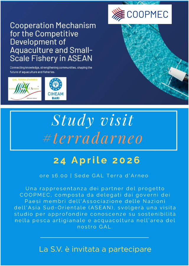 La visita tecnica si inserisce nell’ambito del progetto COOPMEC e del corso “Capacity development for Sustainability in SSF (small-scale fisheries) and Aquaculture: ASEAN-Mediterranean Knowledge Exchange”, con l’obiettivo di promuovere il dialogo e la condivisione di esperienze tra territori uniti da sfide comuni legate alla sostenibilità.