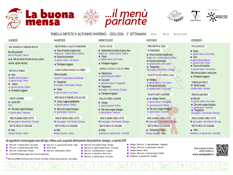 - introduzione di una definizione chiara e vincolante di “prodotto locale”, finalizzata a favorire l’impiego di materie prime del territorio, quali uova, olio extravergine di oliva, verdure e ortaggi;