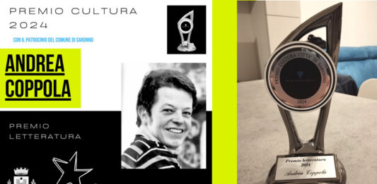 Andrea Coppola Premio Letteratura 2024 Città di Saronno Notizie riprese dal sito ilsaronno.it – (Giulia Ariti) SARONNO – Si è svolto venerdì 7 giugno 2024 per il sesto anno consecutivo presso il Cinema Teatro Prealpi di Saronno il “Premio cultura città di Saronno”, evento ideato dal regista e produttore cinematografico Luciano Silighini Garagnani. Presentatore della … Leggi tutto Il concittadino vegliese ANDREA COPPOLA fra i premiati al “Premio Cultura 2024” nella Città di Saronno