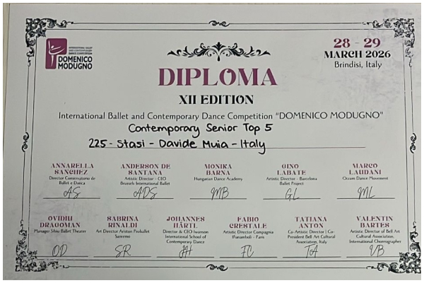 Davide si è confrontato, nella sua categoria, con  ben 33 ballerini di alto livello, ottenendo un risultato di grande rilievo in un contesto altamente competitivo e di respiro internazionale.