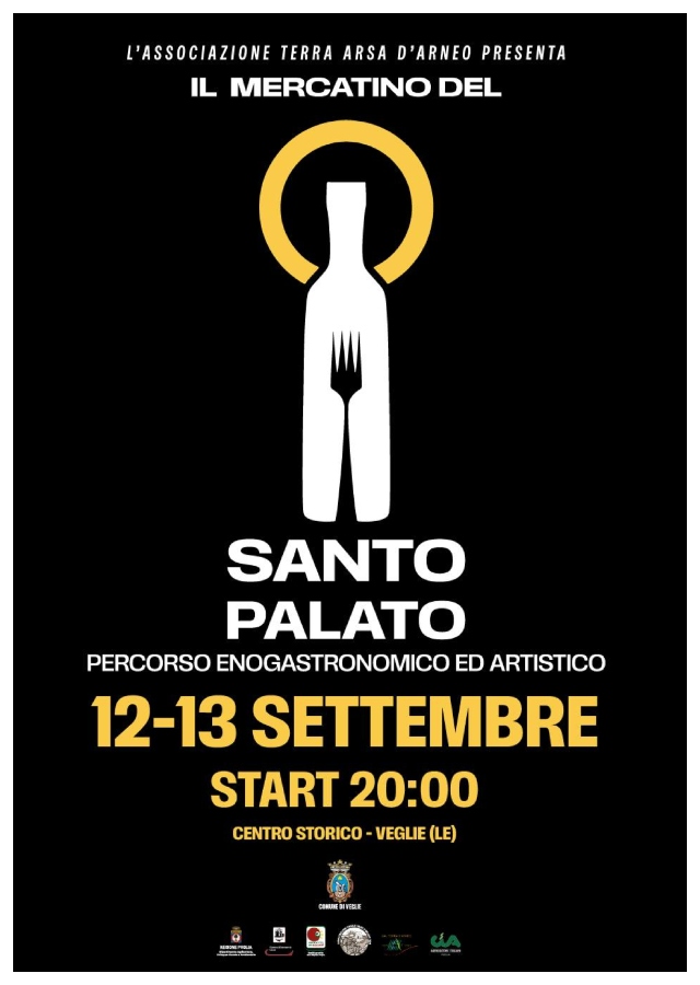 VEGLIE – Torna a Veglie la seconda edizione de “Il Mercatino del Santo Palato”, evento itinerante lungo le piazze e le vie del centro storico che animerà le serate di venerdì 12 e sabato 13 settembre 2025, a partire dalle ore 20.