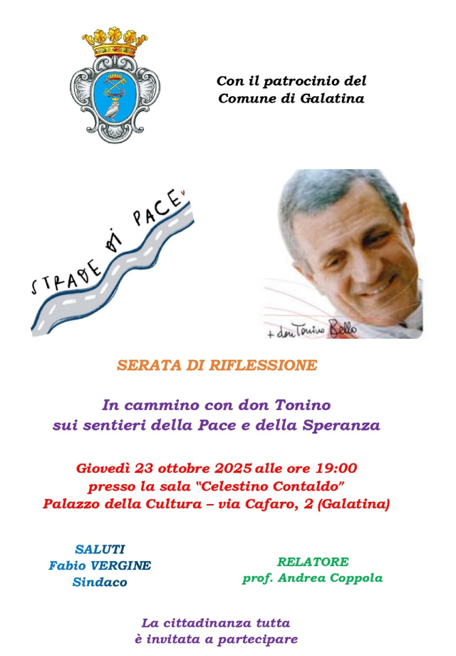 Giovedì 23 ottobre 2025 alle ore 19 si terrà, con il patrocinio del Comune di Galatina, presso la sala “Celestino Contaldo” – Palazzo della Cultura in via Cafaro, 2 una serata di riflessione sul tema