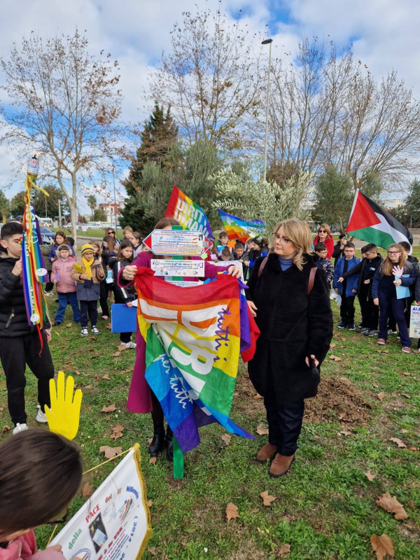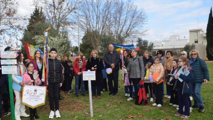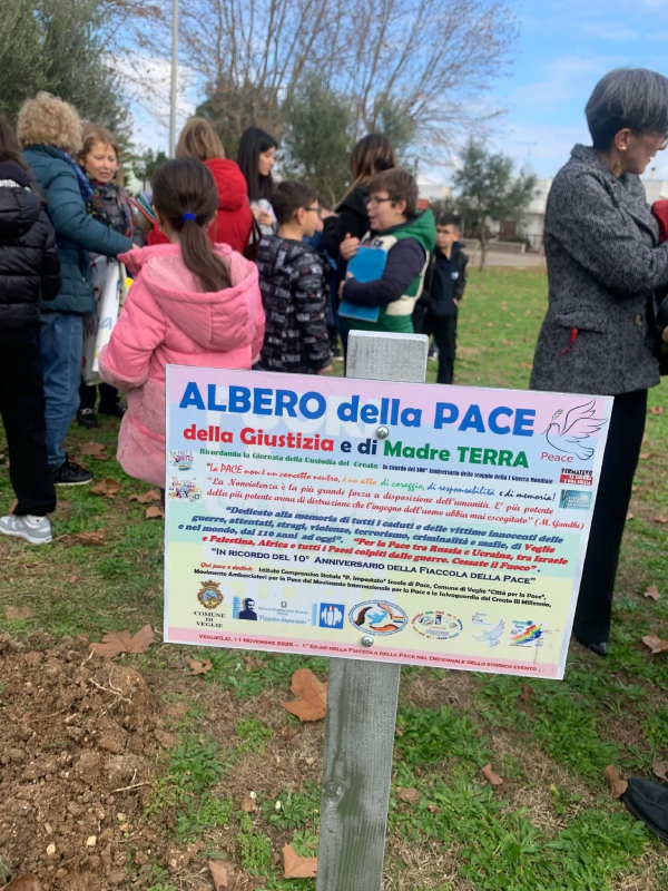 Al termine della cerimonia, la Presidente del Movimento per la Pace ha acceso e consegnato al Sindaco junior la Fiaccola della Pace, quindi è seguito un breve corteo in direzione del vicino Parco comunale dov’è avvenuta la cerimonia della messa a dimora dell’ Albero della Pace, ovvero il simbolo della mobilitazione.