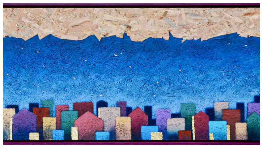 «Le mie tele sono pannelli di OSB, legno nato da scarti. È la metafora perfetta delle nostre cicatrici, che non vanno nascoste, ma trasformate in punti di forza», spiega l’artista Erika De Benedetto. «”OLTRE” è un invito a dialogare con la propria ‘casa’ interiore, ad aprire il “Cassetto d’anima” dove teniamo chiusi i nostri sogni e a non lasciarsi sconfiggere dai rimpianti. Spero che questo viaggio possa ispirare chiunque a trovare, anche nel buio, una luce per ricominciare.»