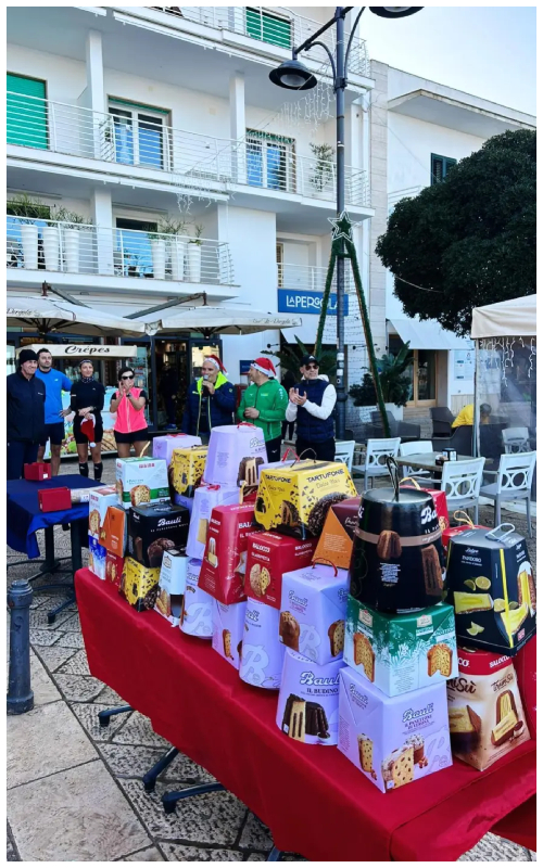 Sì è svolta Venerdì 26 Dicembre 2025 a Santa Maria al Bagno la ormai tradizionale “Panettone Sospeso Run”, la corsetta-passeggiata attraverso la quale le associazione podistiche Sport Running Portoselvaggio e Salento in Corsa Veglie raccolgono i panettoni, i dolci tradizionali universalmente più tipici del Natale, che poi provvedono a donare a chi ha più bisogno. Ogni podista o camminatore che partecipa alla manifestazione deve presentarsi al via con un panettone e consegnarlo agli organizzatori.