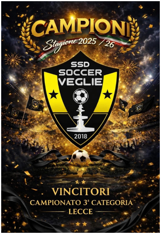 Un traguardo che porta la firma di tutta la squadra, calciatori e dirigenza. Un traguardo che ha fatto grande e portato in alto il nome di un paese: SOCCER VEGLIE.