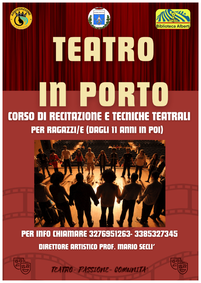 PORTO CESAREO – Teatro, passione, comunità. Uno slogan, una promessa, una certezza e un sogno che si propone di raggiungere il corso di recitazione e tecniche teatrali: “TEATRO IN PORTO”, organizzato dall’associazione Santa Cesarea in collaborazione con la Biblioteca Alberti, il prezioso supporto di Don Antonio Bottazzo e il patrocinio del Comune di Porto Cesareo.