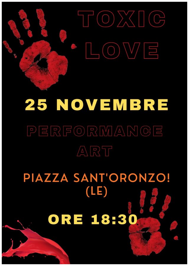 Martedì 25 novembre, alle ore 18.30 in Piazza Sant’Oronzo, si darà vita ad una PERFORMANCE ART dove ogni passante potrà lasciare la propria impronta su un telo che sarà l’immagine iconica di una comunità che si muove grazie ai giovani e ai loro buoni propositi.