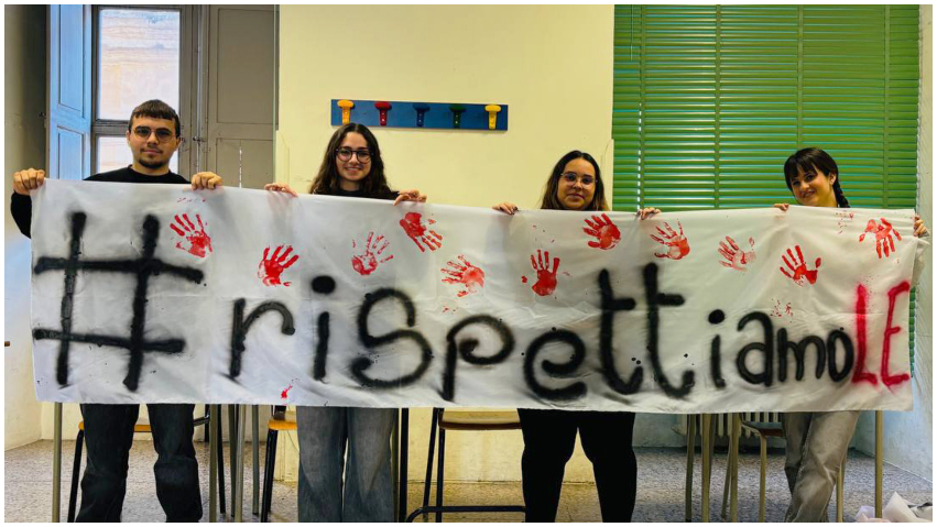 «Il cuore di #rispettiamoLE è semplice e potente – raccontano i 4 studenti della scuola leccese – la violenza non è un problema lontano, e fermarla è una responsabilità collettiva. Domattina saremo in strada per ricordare che: